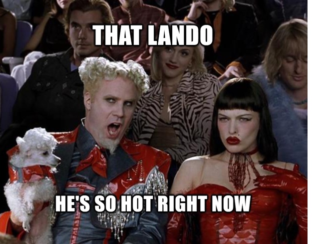 There are variations on a theme (rather than Perceptive Co-Pilot on Lando, C3PO and Hotshot Tail Blaster, or Vi Moradi instead of Bucket), but the constant is definitely Lando…